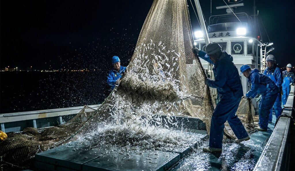 怒号に近い指示が飛び交う中、漁師たちは流れるような動作でシラスを処理していきます。獲る喜びよりも、この繊細な命をどう守り抜くか。その一点に、船上のすべての意識が集中し、深夜の海に火花を散らします。