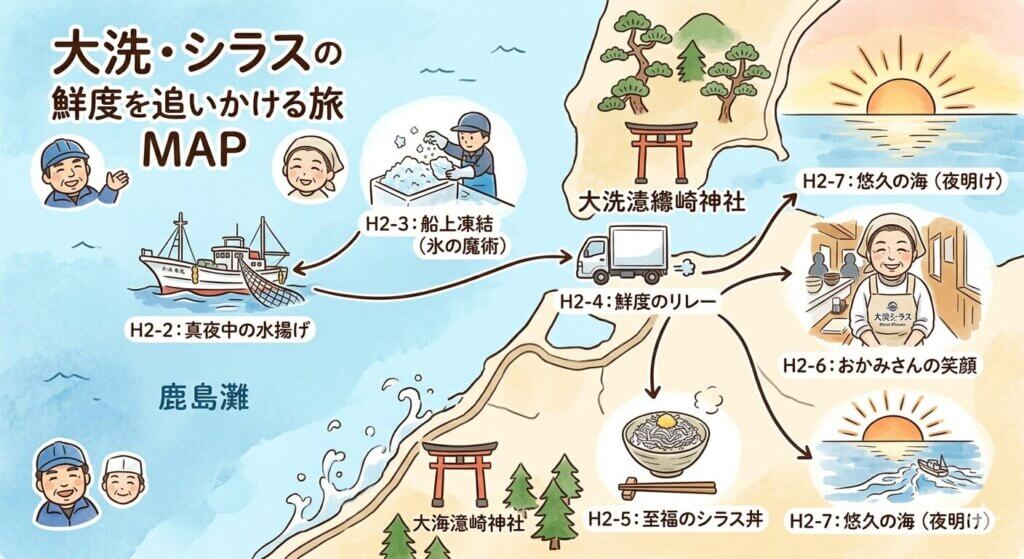 そう語る漁師たちの眼差しは、鋭い職人のそれでありながら、最新のデータを見つめる科学者のようでもあります。今回は、大洗のシラスがなぜ日本最高峰の評価を受けるのか。その裏側に隠された、知られざる「氷の魔術」と、分刻みで展開される「超速流通」の全貌を、2,000文字の徹底レポートでお届けします。