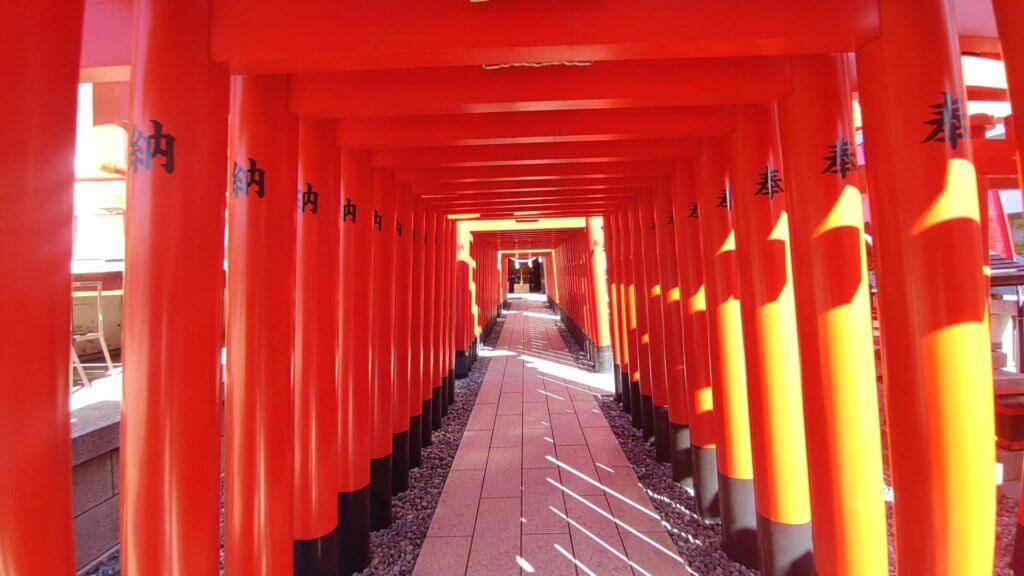 — 朱の鳥居と、町に溶け込む信仰の入口