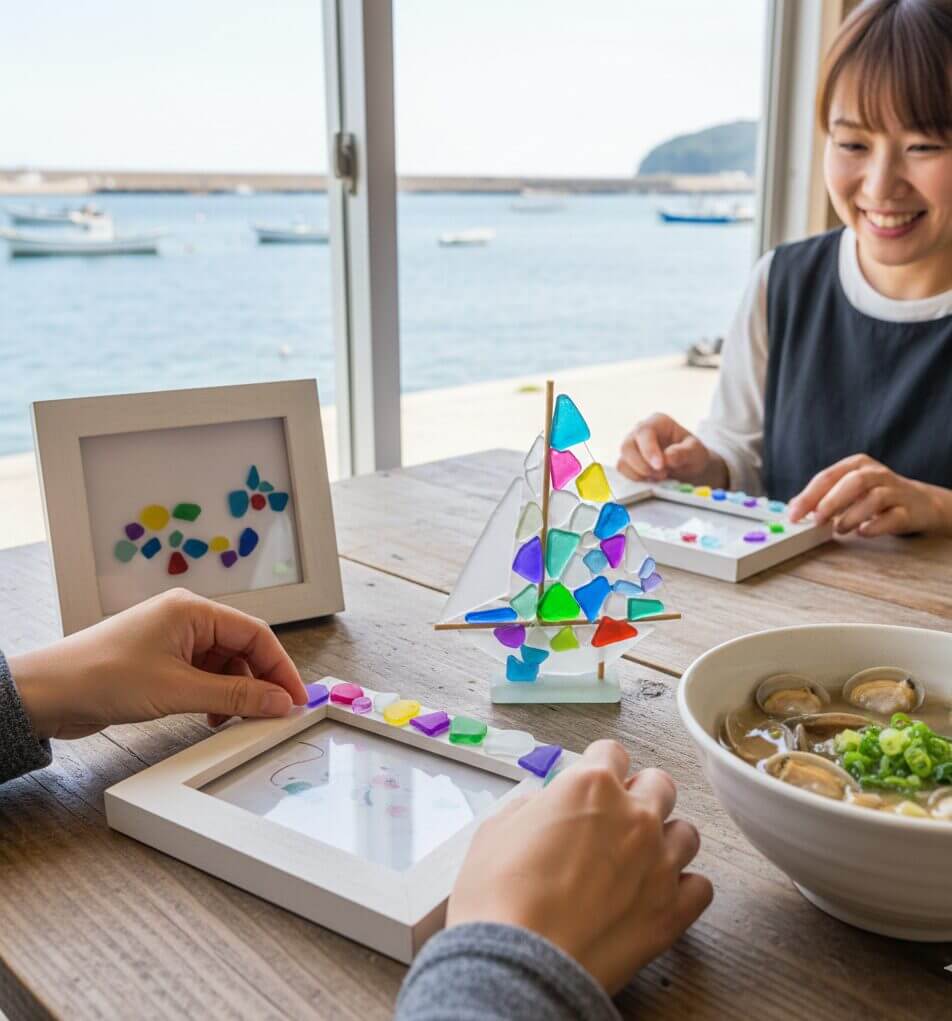 英語でのサポートを行っているアトリエも多く、外国人の方にとっては「日本の海のかけら」をアートとして持ち帰れる絶好の機会です。ご夫婦で、あるいはご友人と、海が見えるアトリエで肩を並べて作業する。完成した作品を手に取る瞬間の笑顔は、この旅で最高のお土産になるはずです。