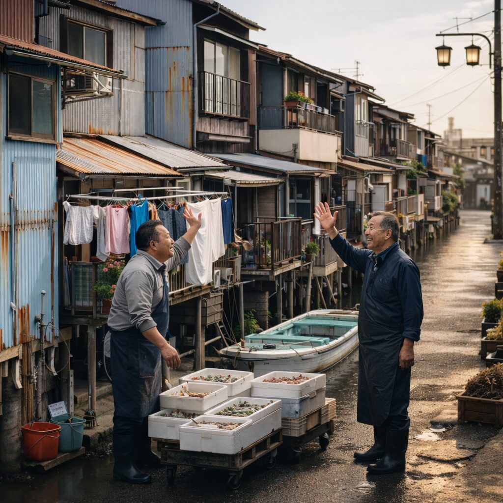 子安から生麦へ歩くこの一帯には、観光地らしい派手さはない。けれど、歩き始めてすぐに気づくのは、街がいまも「使われている」という感覚だ。運河に沿って建つ家々、路地にせり出す生活の気配、朝の時間帯に交わされる短い挨拶や掛け声。ここでは風景が背景ではなく、日々の営みそのものとして立ち上がってくる。