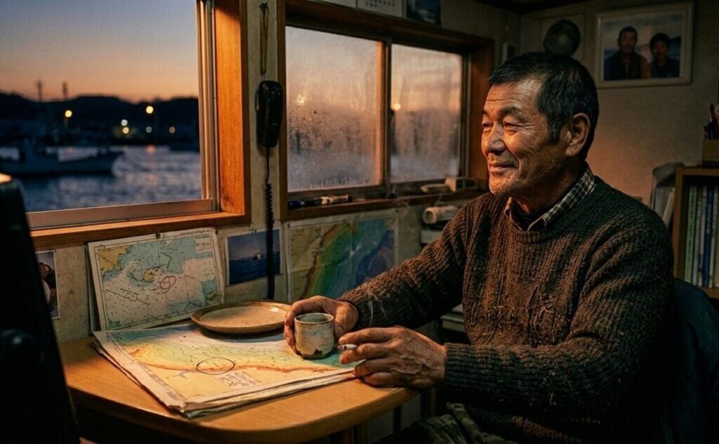 船長はヘッドセットを装着し、僚船と情報を交わしながら、刻一刻と変わる潮の流れを読み解く。モニター上の「点」は、単なるデジタル記号ではない。そこに潜む生命の気配だ。最新機器を使いこなしながらも、最後の引き揚げのタイミングを決めるのは、長年の経験がもたらす一瞬の直感。データと野生が融合する、孤独な戦場がここにある。