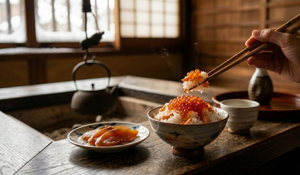 - はらこ飯: 村上ではイクラを「はらこ」と呼びます。宝石のように輝くはらこを贅沢に乗せた丼は、まさに冬の村上を味わう醍醐味。