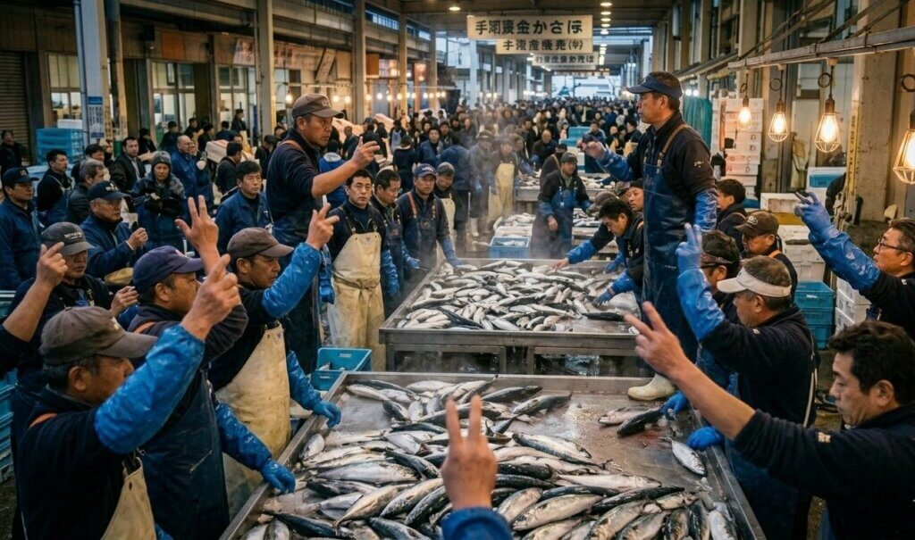 仲買人たちの符丁(ふちょう)が飛び交い、一瞬の指の動きで価格が決まる「手セリ」の開始だ。銀色に輝く魚体を見つめる鋭い目は、単なる商品としてではなく「今夜の食卓の主役」を見極める真剣勝負そのものだ。