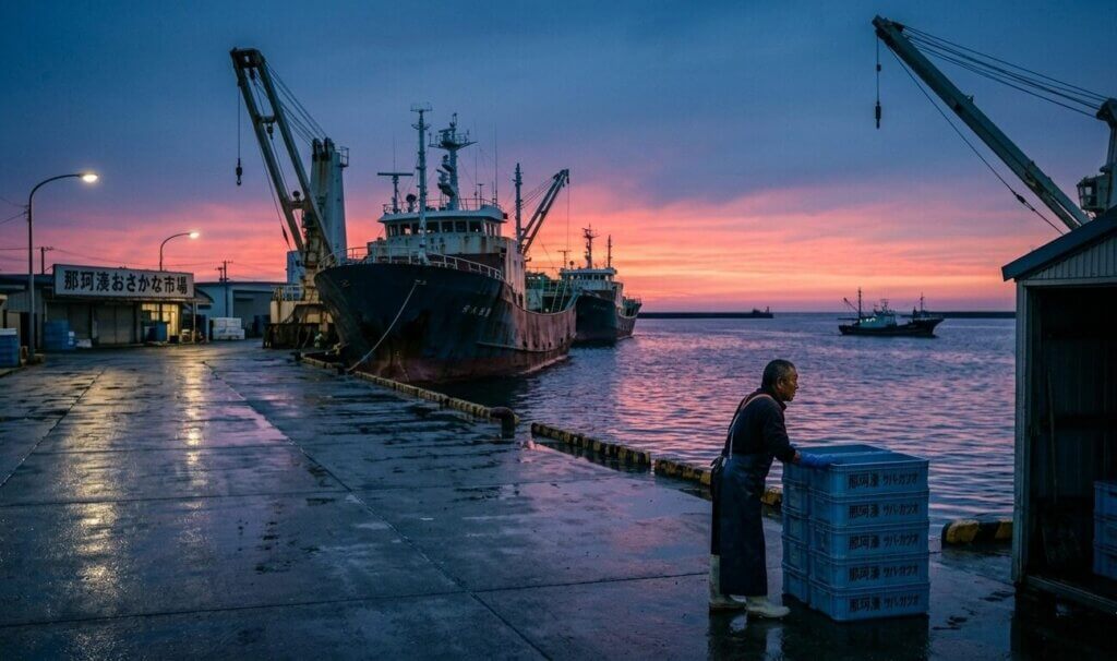 茨城・那珂湊の朝は、静寂ではなく、轟音とともに幕を開ける。那珂川の河口、汽水と黒潮が交わるこの場所は、太平洋の豊かな恵みを積み込んだ漁船たちの「帰るべき母港」だ。水平線から昇る朝陽を背に、錆びついた巨体が接岸した瞬間、市場の空気は一変し、戦場さながらの熱気に包まれる。