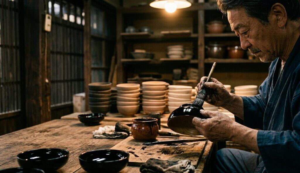 「このお椀、手にしっくり馴染むわ。漆の黒が、職人さんの温かい手のひらみたい。」