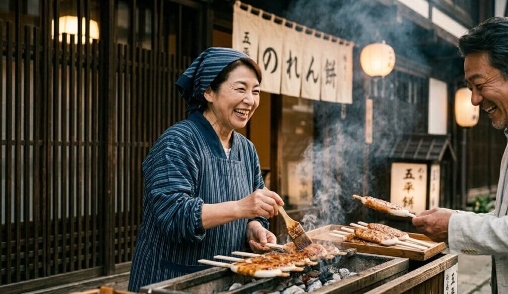 香ばしい味噌の匂いに誘われて、一休み。炭火でじっくり焼かれた五平餅は、この土地で生きる人たちの「元気の源」です。一口食べれば、くるみのコクと味噌の甘みが、歩き疲れた体にじわっと染み渡る。気取らない、けれど決して真似できない、この「故郷の味」が、旅の緊張を優しく解いてくれます。