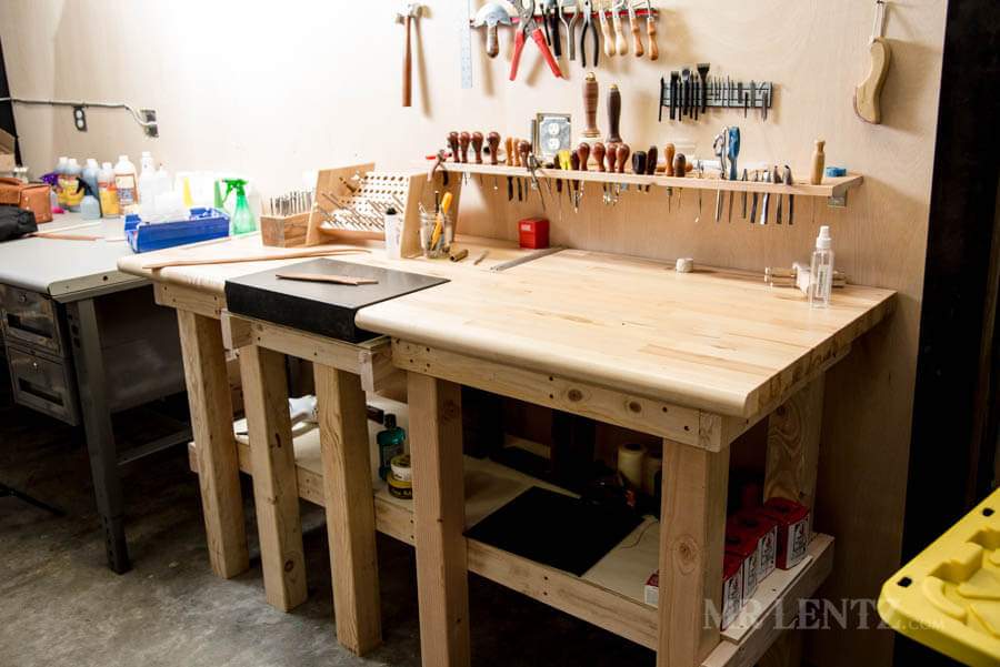 机の上には、使い込まれた道具が必要な分だけ並ぶ。