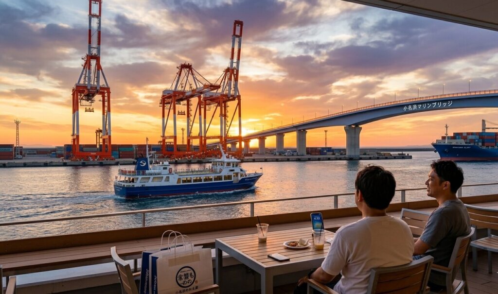 - 17:00 | 黄金色のフィナーレ: 「小名浜マリンブリッジ」を歩き、港全体が夕日に染まる瞬間を見届けます。