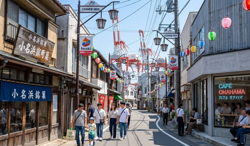 港から一歩入った小名浜本町通りには、どこか時間がゆっくり流れているような空気があります。年季の入った看板建築の店先と、その隣に並ぶリノベーションされたカフェやゲストハウス。この新旧が自然に混ざり合う風景は、観光地というよりも「生活の延長線」にある街の姿そのものです。歩く速度を落とすほどに、この場所の奥行きが見えてきます。