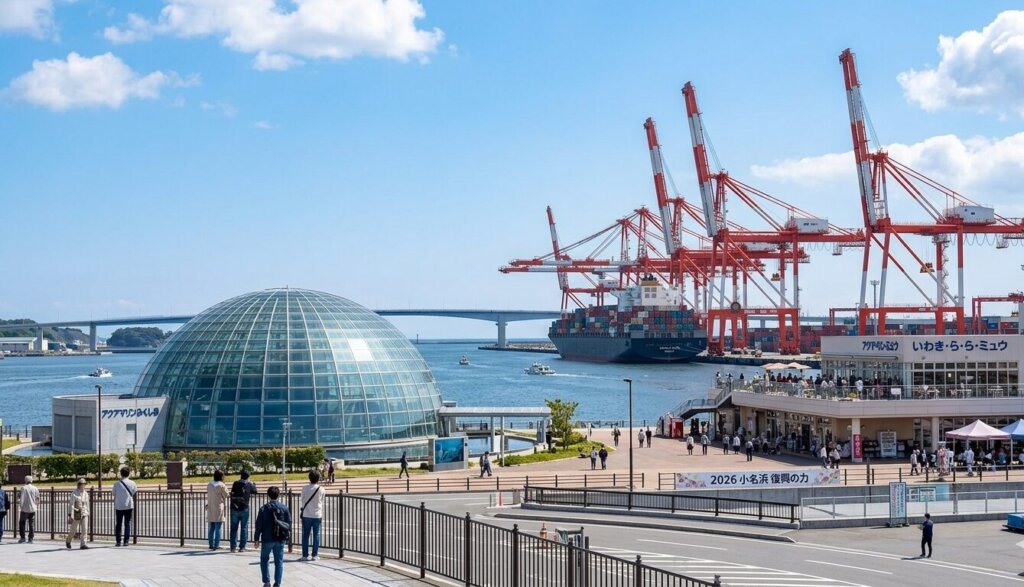 空を突く巨大なガントリークレーン。ガラスドームの中で泳ぐ魚たち。商店街で交わされる穏やかな笑顔。かつては相容れないと思われていた「産業」と「生命」と「日常」が、2026年の今、この小名浜という場所で見事に溶け合い、新しい街の形を形作っています。