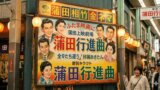看板や建物の正面に目を向けると、
