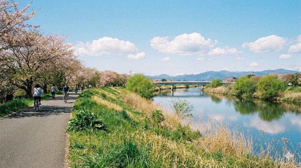 川沿いを進むと、歩く速さが決まる