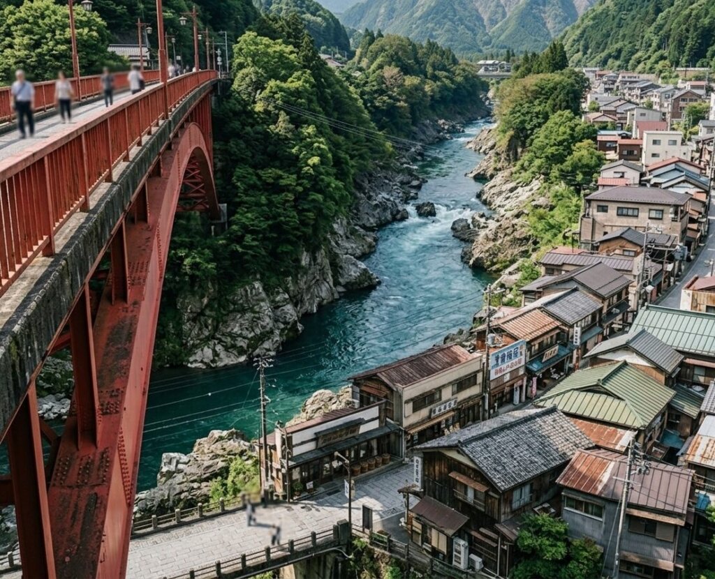 大月の桂川が「断崖を削る咆哮」なら、青梅の多摩川は「街を抱く母体」です。御岳渓谷の激流が山地を抜け、大きく蛇行しながら平地へと流れ出すその「喉元」に、青梅の街は横たわっています。赤いアーチが印象的な万年橋は、単なる橋ではありません。そこは奥多摩の険しい自然と、人の営みが続く宿場町を分かつ心理的な境界線。ここを越えた瞬間、空気は渓谷の冷気から、どこか懐かしいお茶の香りが漂う「現役の昭和」へと塗り替えられていくのです。