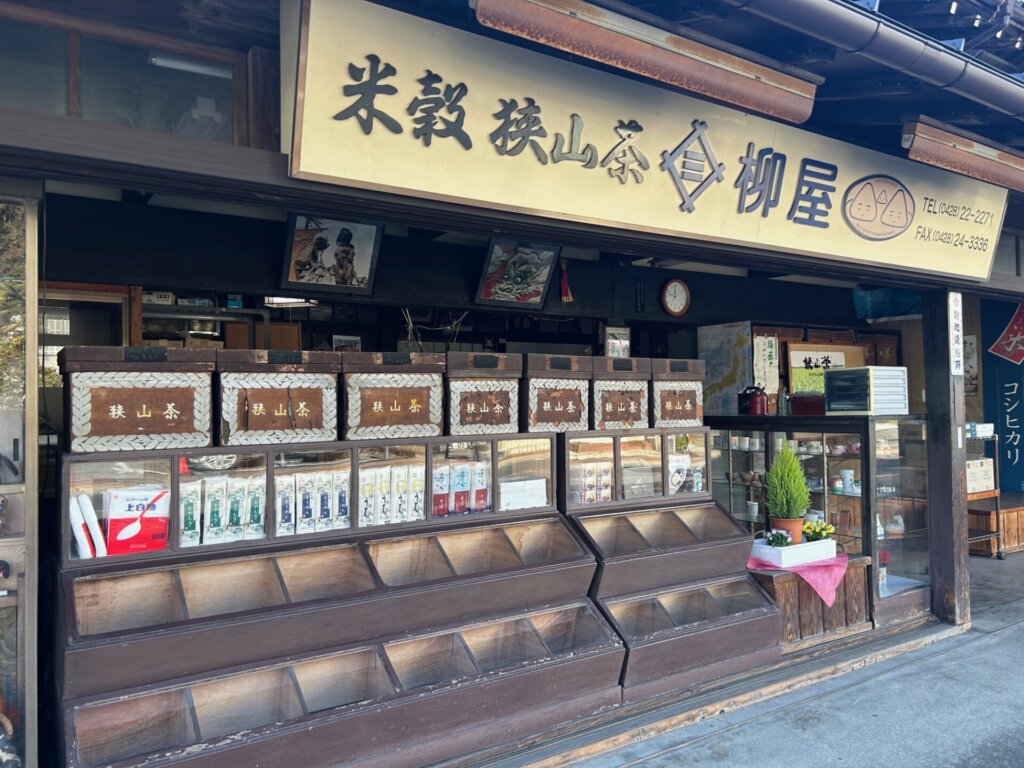 - 柳屋(米穀・狭山茶): 創業から続くお茶の香りと、歴史を物語る巨大な看板・茶樽が圧巻の老舗。
