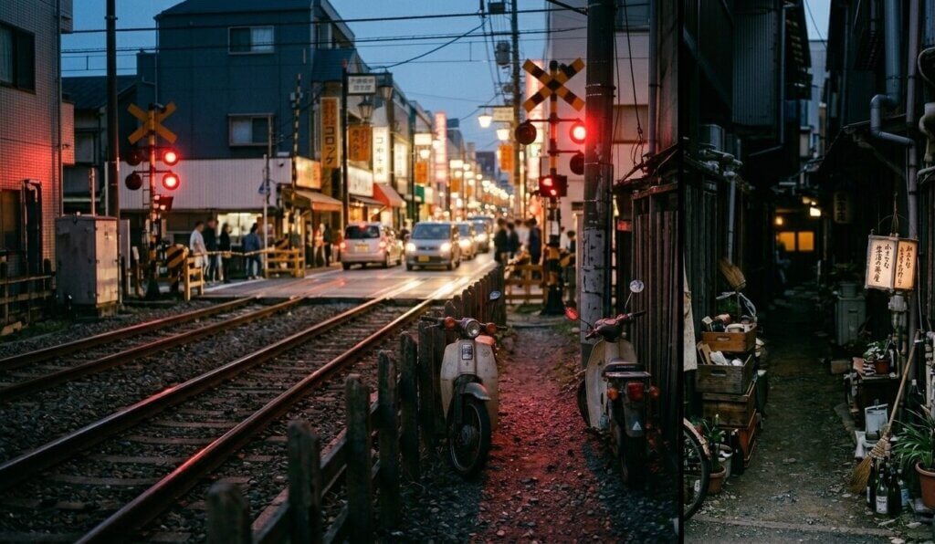 「カンカンカン」という乾いた警報音が、表舞台の陽気な喧騒を物理的に切り裂く。東急池上線の踏切が降りるたび、観光客の波は強制的に堰き止められ、街は一瞬の静寂を強要される。この足止めを食らったわずかな数分間こそが、街の「素顔」を覗き見るスイッチだ。