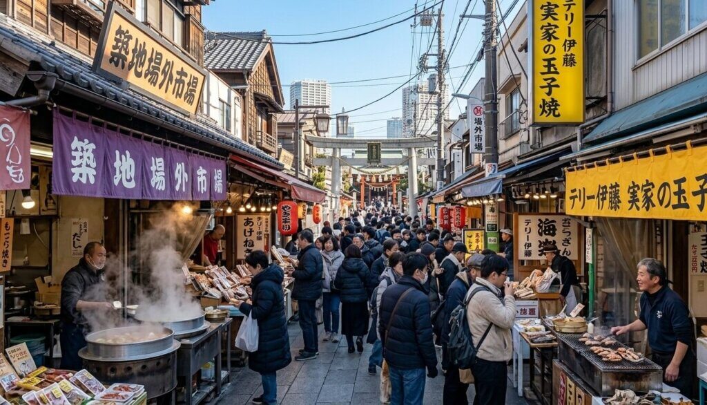 通路を埋め尽くす人波、立ち上がる焼き魚の煙、そして飛び交う多言語。このカオスこそが築地の真髄だ。豊洲が「静」の物流拠点なら、築地は今も「動」の食文化発信地であり続けている