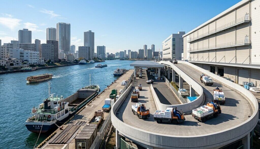 巨大な「食の工場」豊洲。水上桟橋から始まる物流の美学